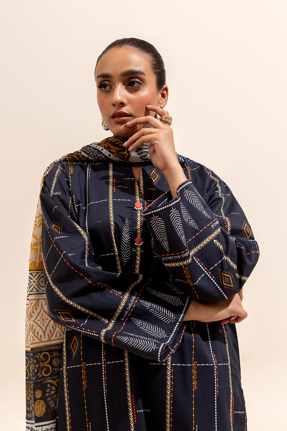 2 PIECE PRINTED LAWN SUIT-NEBULOUS LINES (UNSTITCHED)