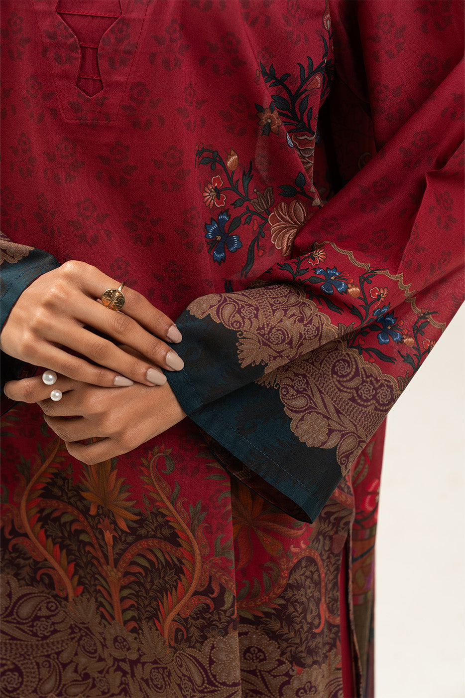 3 PIECE PRINTED LAWN SUIT-RED PEPPER (UNSTITCHED)