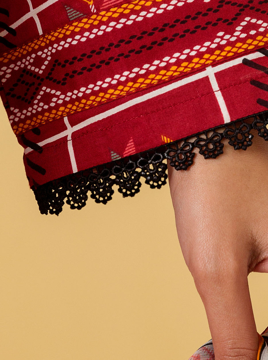 2 PIECE - PRINTED LAWN SUIT - SCARLET GRID