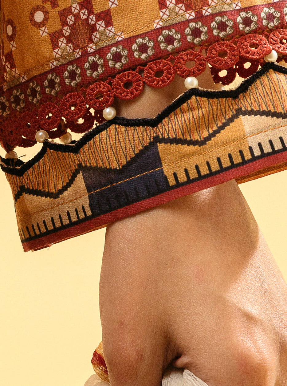 2 PIECE - PRINTED LAWN SUIT - MUSTARD MAZE