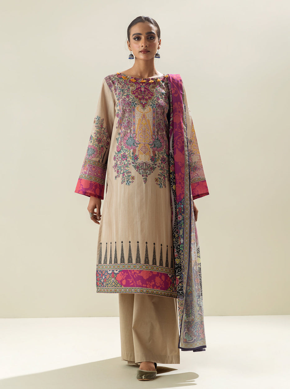 3 PIECE - PRINTED LAWN SUIT - ROYALTY BEIGE