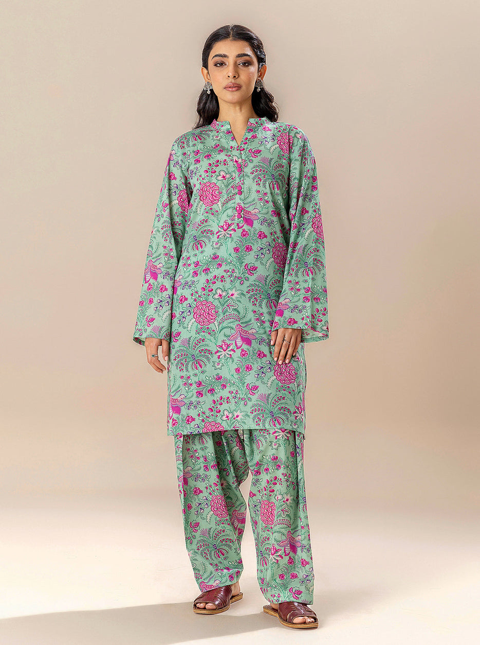 2 PIECE PRINTED LAWN SUIT-JADE SHEEN (UNSTITCHED)