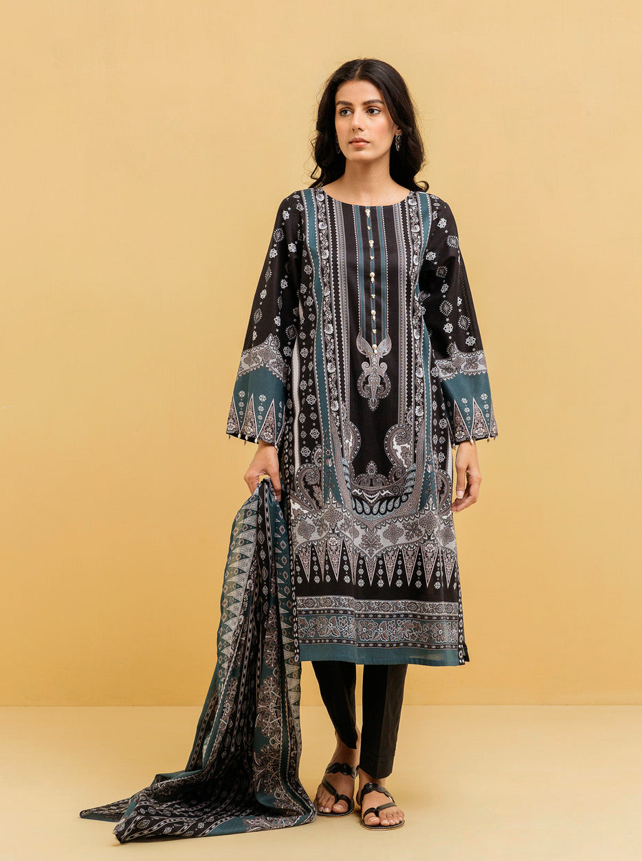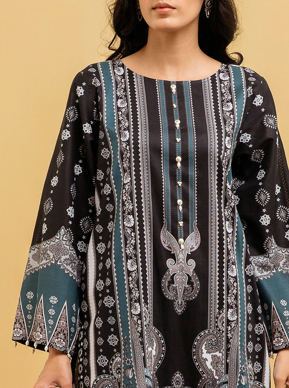 2 PIECE - PRINTED LAWN SUIT - BLACK NOSTALGIA