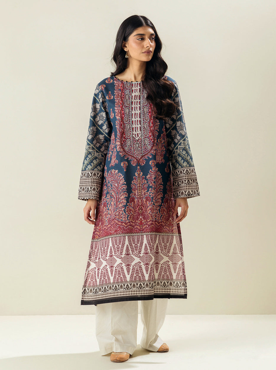1 PIECE - PRINTED LAWN SHIRT - NAVY CLOUDS