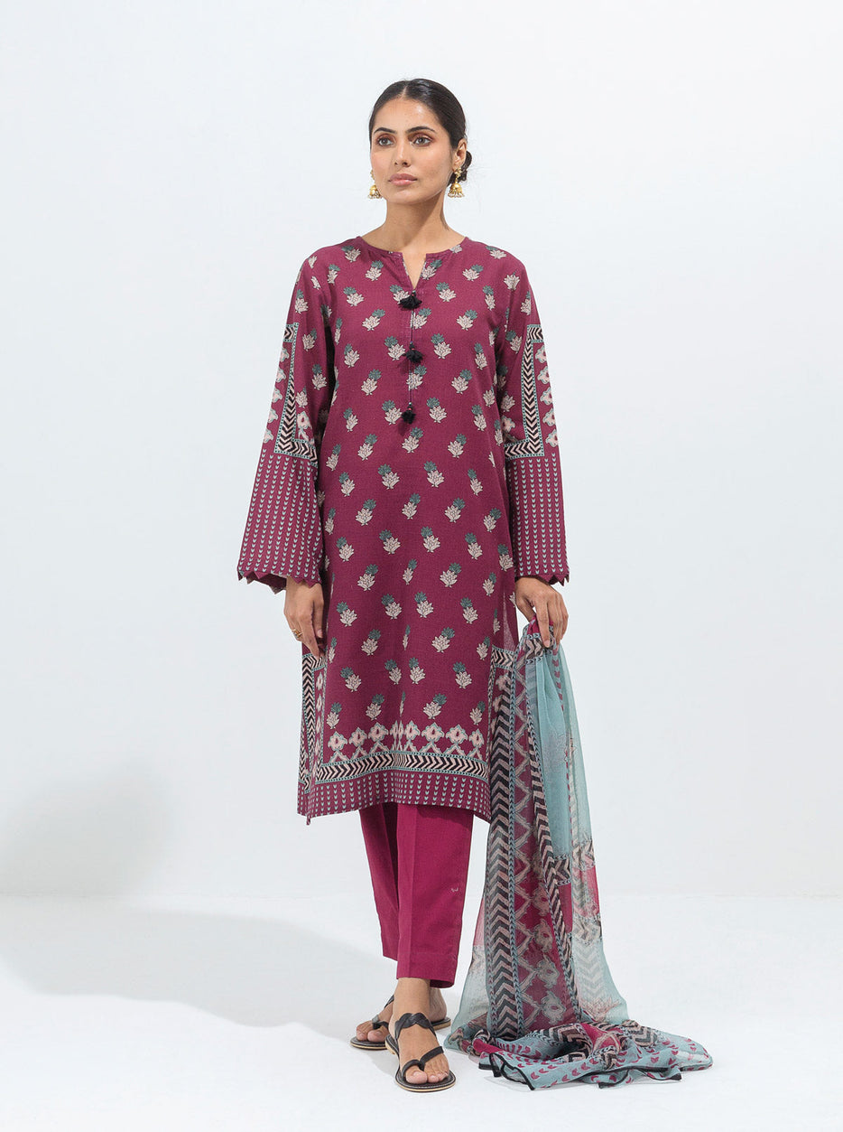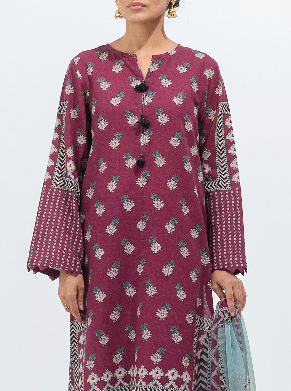 3 PIECE - PRINTED KHADDAR SUIT - FUCHSIA FLORA