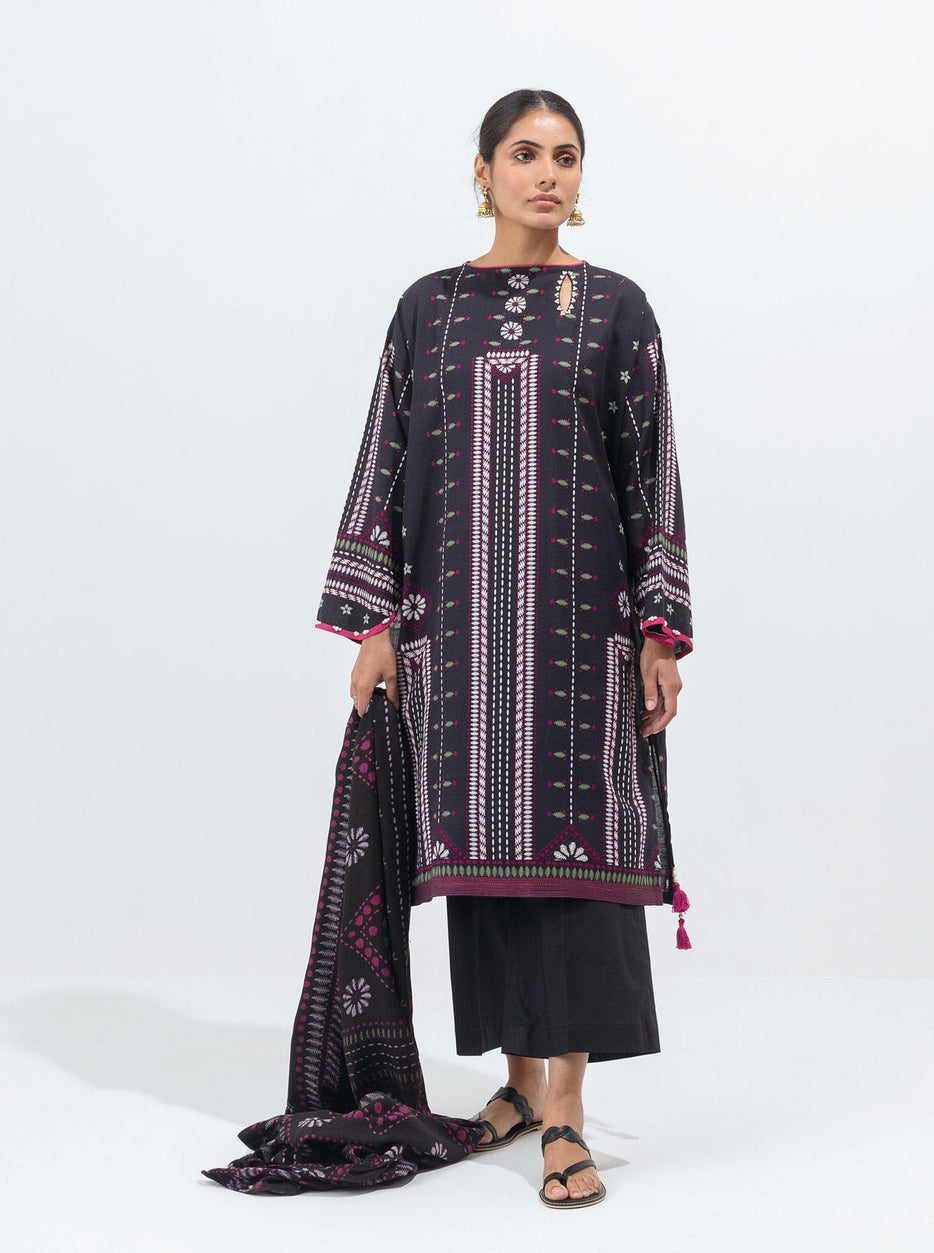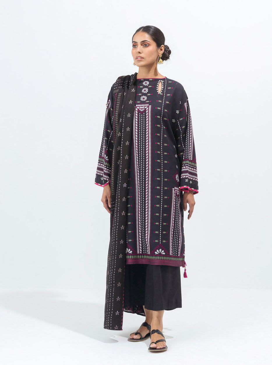 3 PIECE - PRINTED WITH SHAWL KHADDAR SUIT - CLASSIC BLACK
