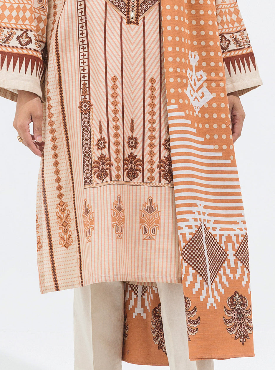 3 PIECE - PRINTED KHADDAR SUIT - HAZEL BEIGE