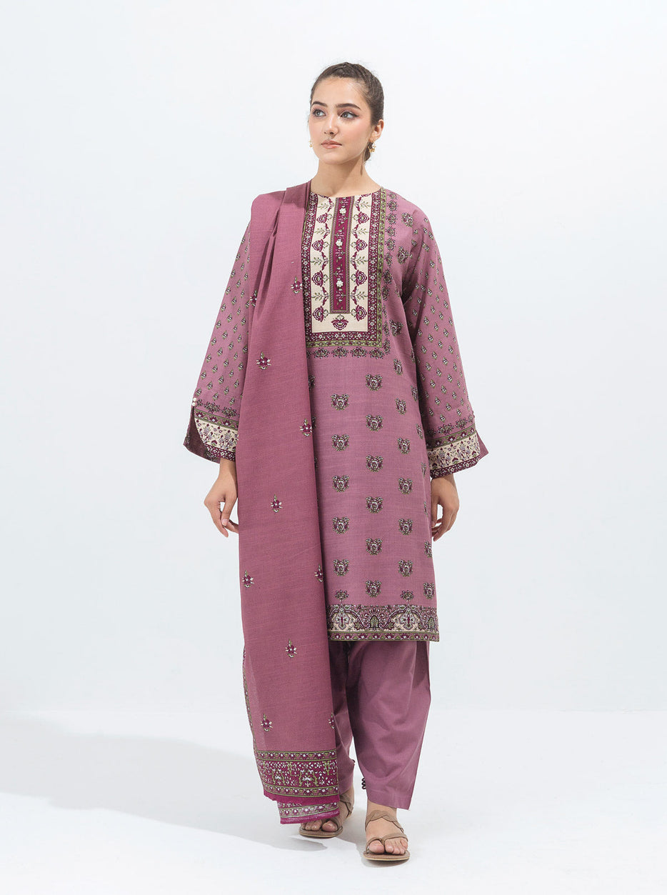 3 PIECE - PRINTED KHADDAR SUIT - MAUVE HAZE