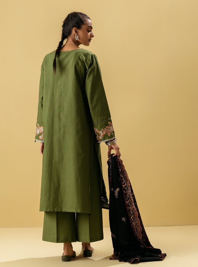 3 PIECE - EMBROIDERED WITH SHAWL KHADDAR SUIT - SAGE BOUQUET