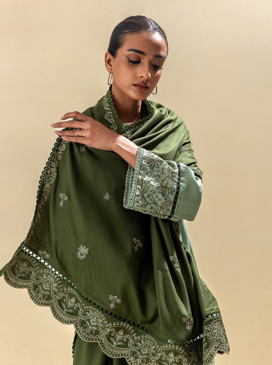 3 PIECE - EMBROIDERED KHADDAR SUIT WITH EMBROIDERED SHAWL - MOSSY MAGIC