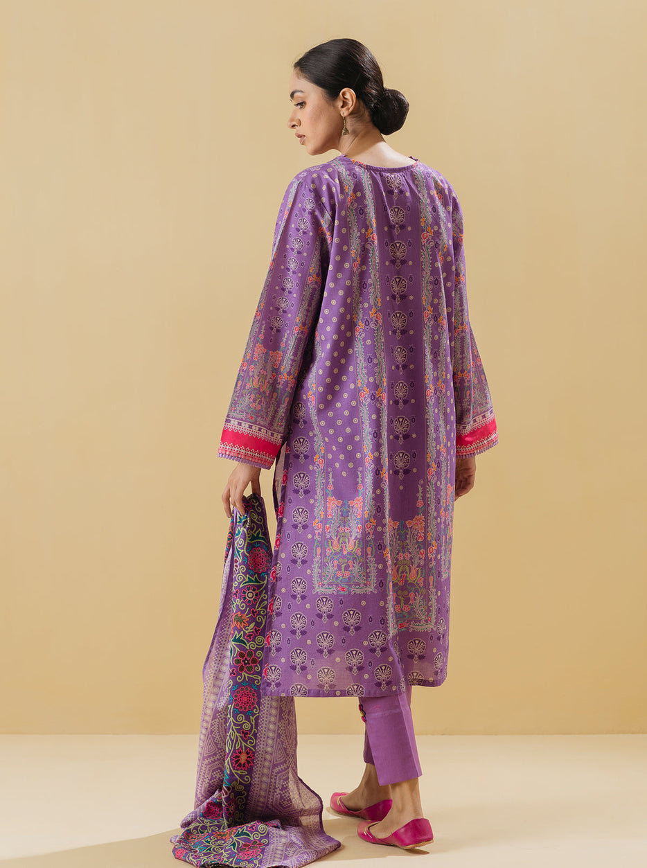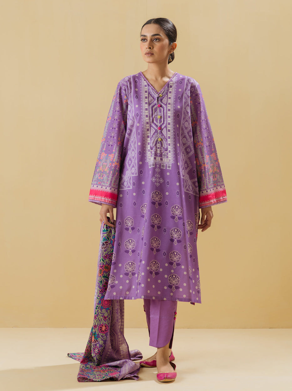 3 PIECE - PRINTED LAWN SUIT - ORCHID TONE