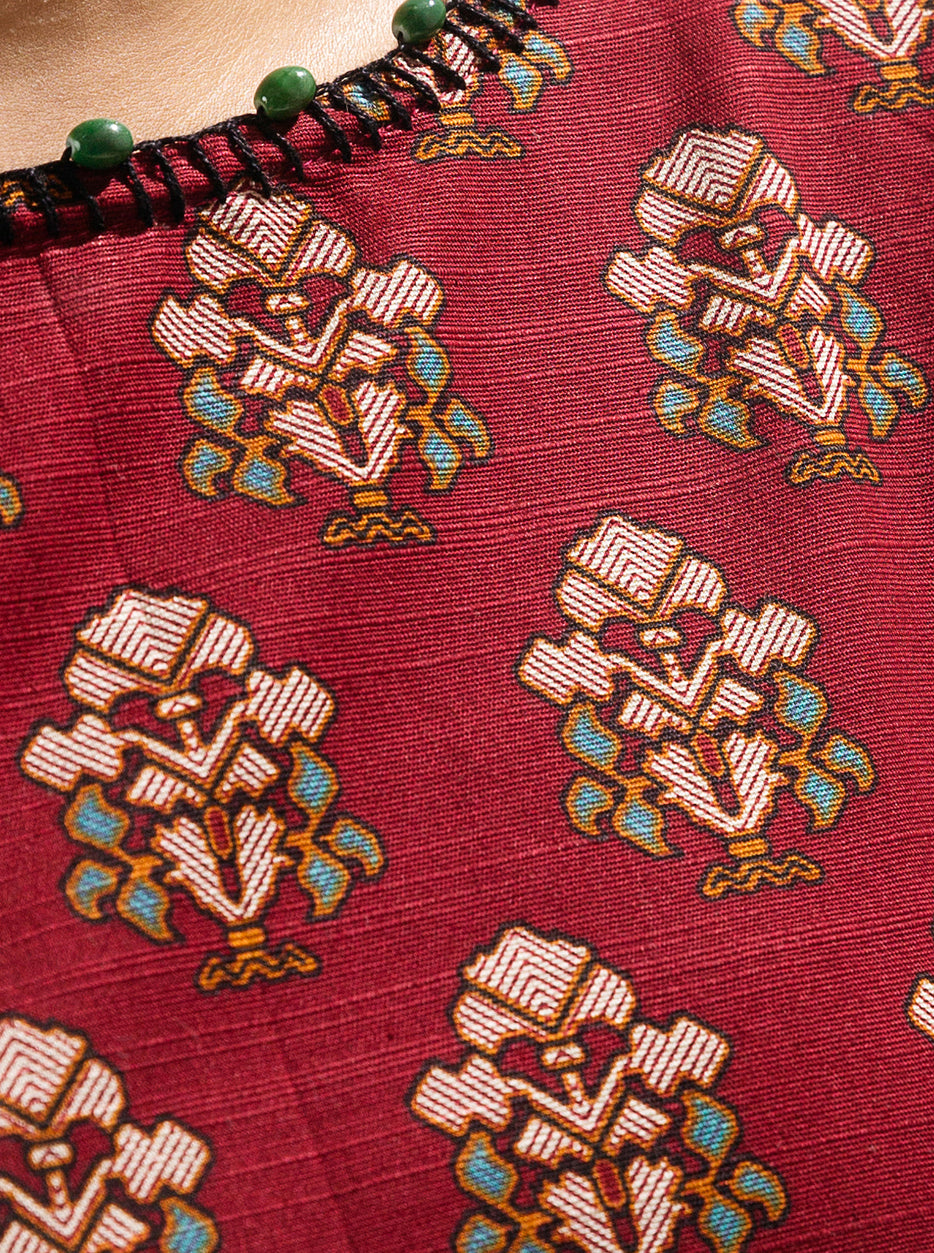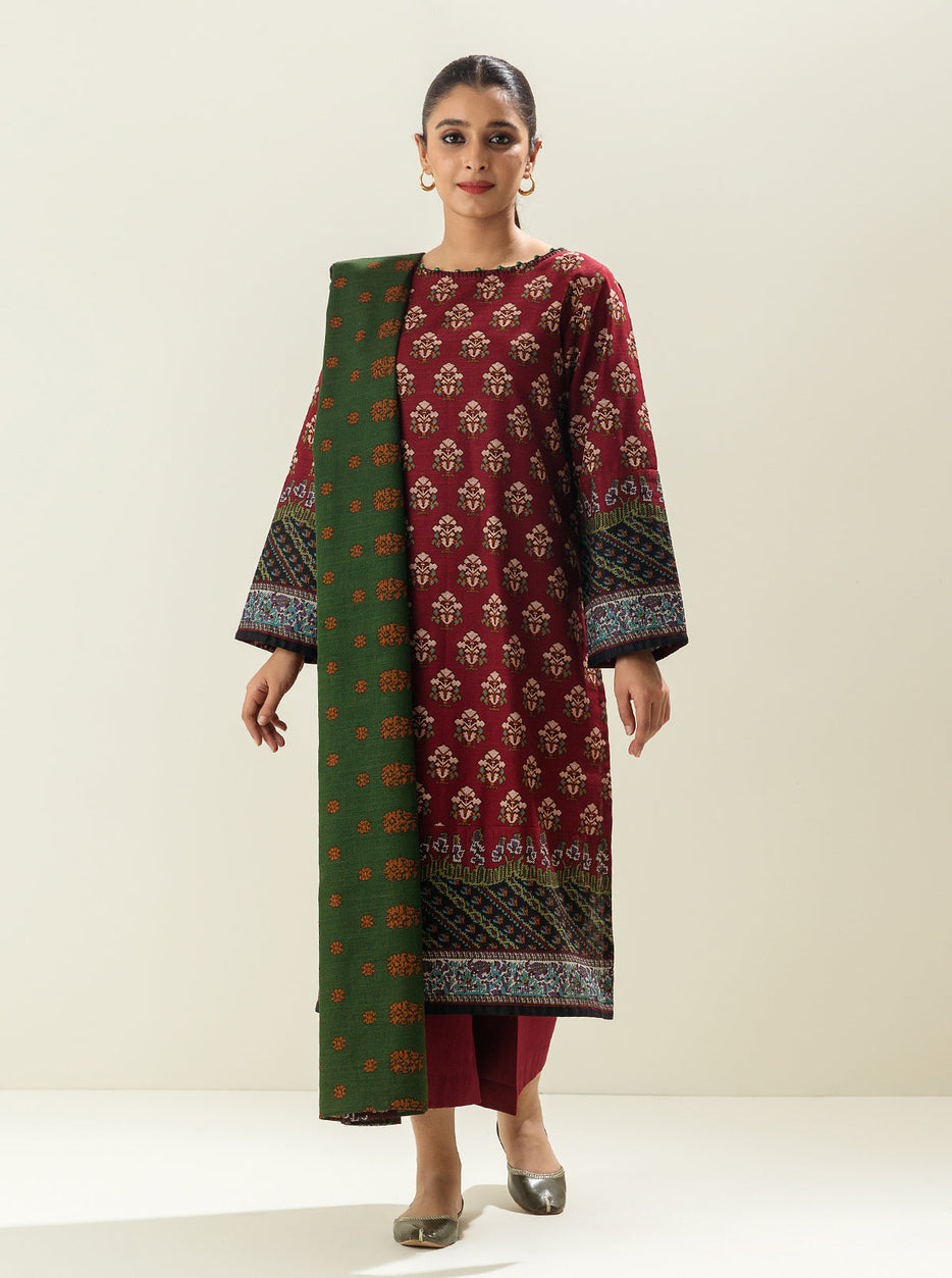 3 PIECE - PRINTED KHADDAR SUIT - RUSTIC RED