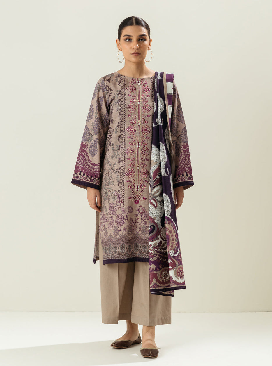 2.9 Mtrs Digital Printed Khaddar Shirt With Embroiderery , 2.5 Mtrs Digital Printed Khaddar Dupatta, 2.5 Mtrs Dyed Pants