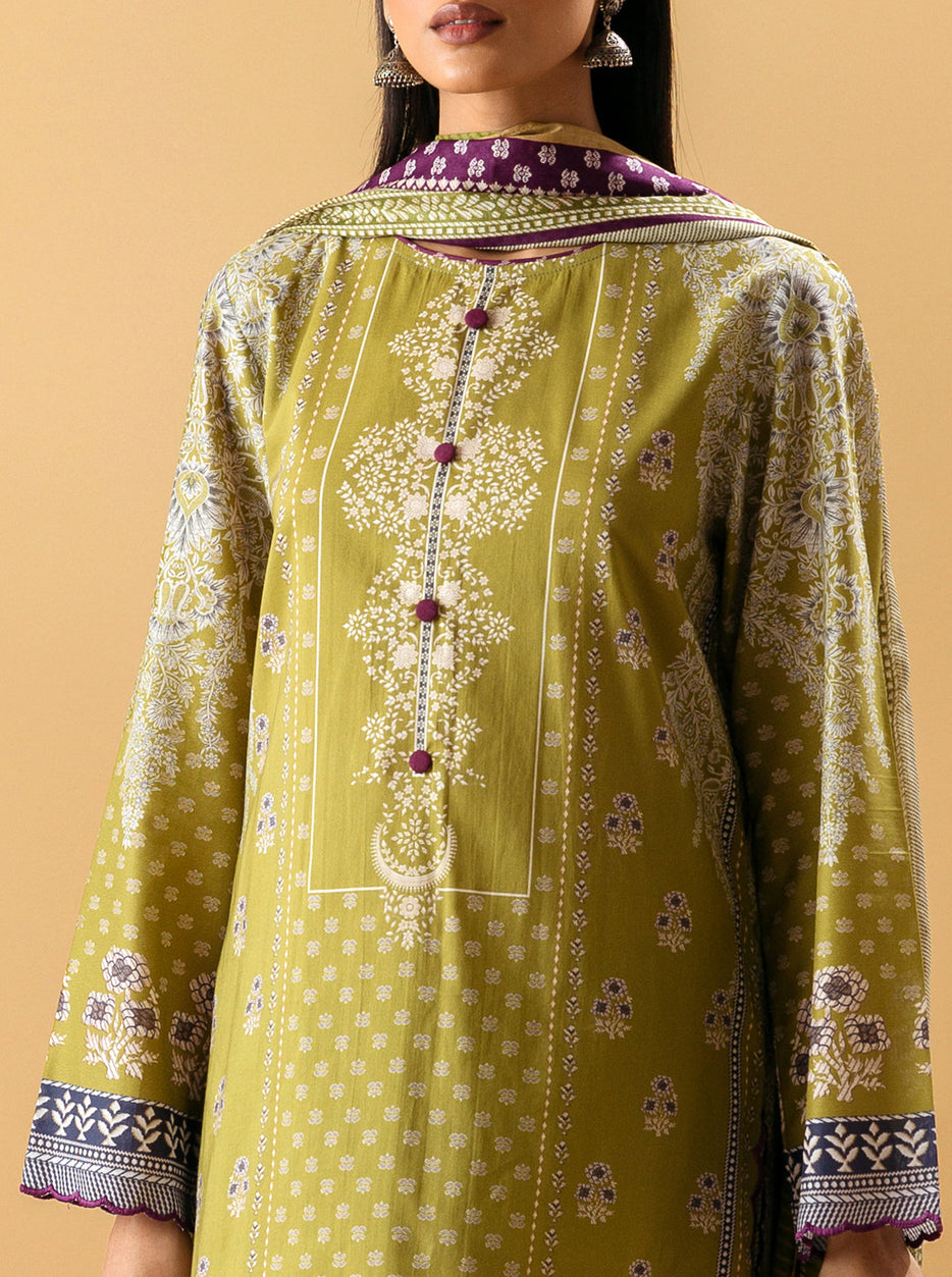 3 PIECE - PRINTED LAWN SUIT - LIME VERDANT