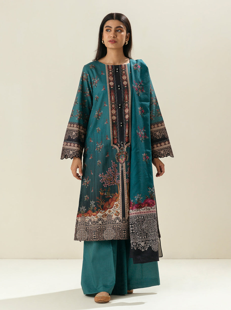 3 PIECE PRINTED LAWN SUIT-EMERALD ABUNDANCE (UNSTITCHED)