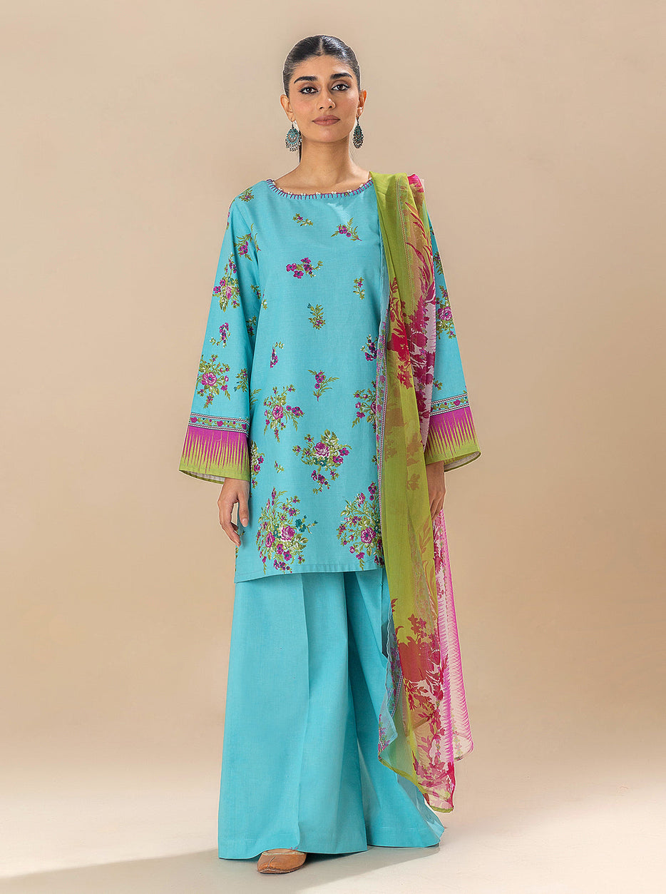 2 PIECE PRINTED LAWN SUIT-TENDER SKY (UNSTITCHED)